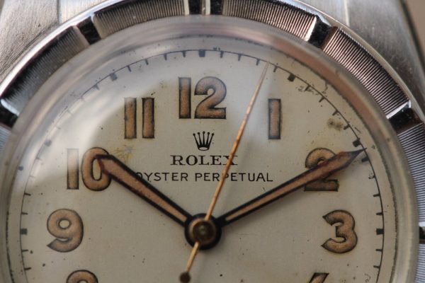 Dial is original, chapter ring with Arabic numerals with all radium fully intact and have aged to an orange hue patina. Original sword hands in blued steel with full radium intact and matching to the dial.