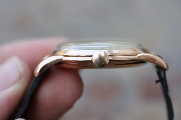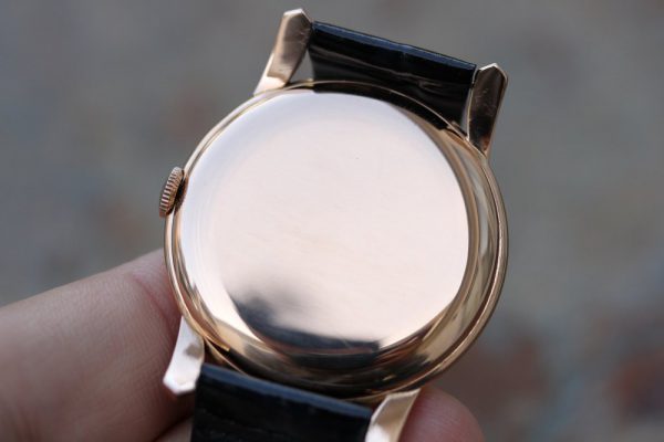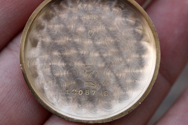 Caseback is original, damage free on outside. Inside is stamped with hallmarks and serial number dating the watch about 1949 production.
