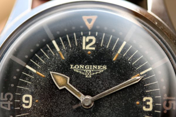 Dial is original and radium and damage free. Nice orange patina on all plots. This is the first generation MK1 dial for this watch with “swiss” only, gilt print, small dot at 6. The lacquer finish of the dial has aged to a matted finish over the years. There is no relume, no refinish, no man-made damage. The watch test with Geiger counter and shows strong readings.