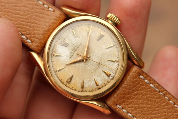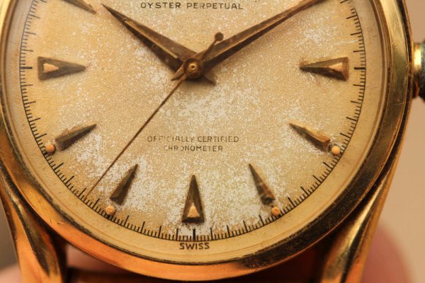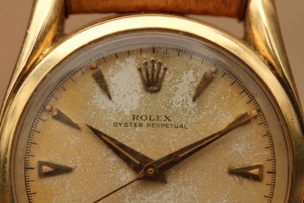 Up for grabs is a Rolex Oyster Perpetual in 18kt yellow gold