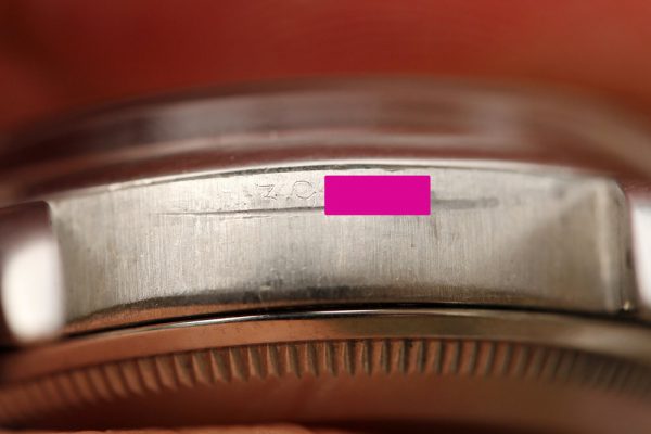Excellent vintage condition case without major dings or dents. Serial and reference numbers are intact and visible.