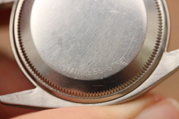 Caseback is original, in excellent condition. Outer “stainless steel” engraving is still clearly visible, but usually lost due to wear and polish. Inside is stamped 6556 and I.56