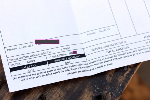 The watch also comes with 2 service receipts from 2012 and 2017.