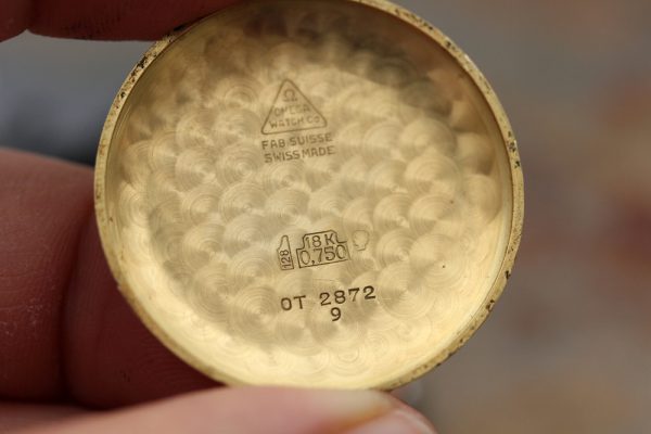 Caseback is snap-on type, original, stamped 18kt and OT 2872 9
