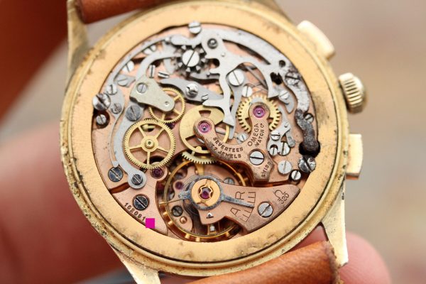 The movement is a caliber 320 manual wind. The watch runs, winds, and chronograph engages, runs, and resets back to zero.