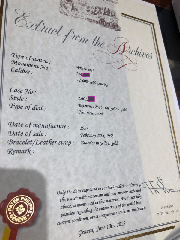 1958 Patek Philippe Calatrava ref. 2526 “Yellow Gold, Extract, Enamel Dial, Bracelet, Serviced”