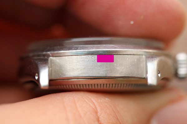 Excellent vintage condition case shows obvious signs of wear and age, but also shows little signs of polishing or refinishing. Very crisp and fully intact numbers between lugs. No corrosion or pitting.