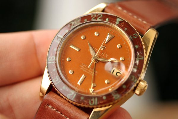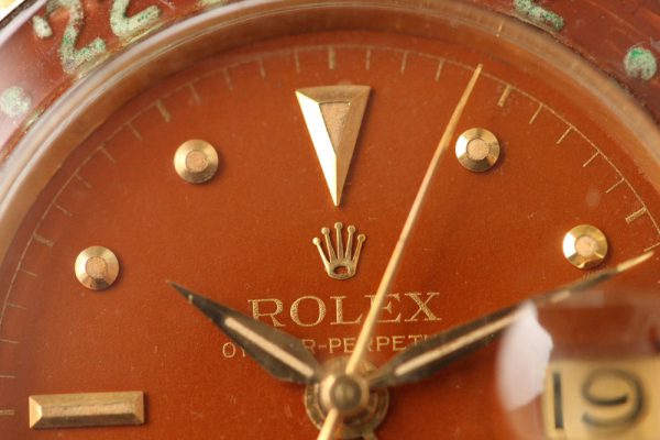 Dial is extremely beautiful and all original, radium, chapter ring. The dial has a very even color change throughout to a very vivid caramel orange color. The dial is already brown from the factory, but this is lighter and more orange than other example. No refinish, no relume, no damage.