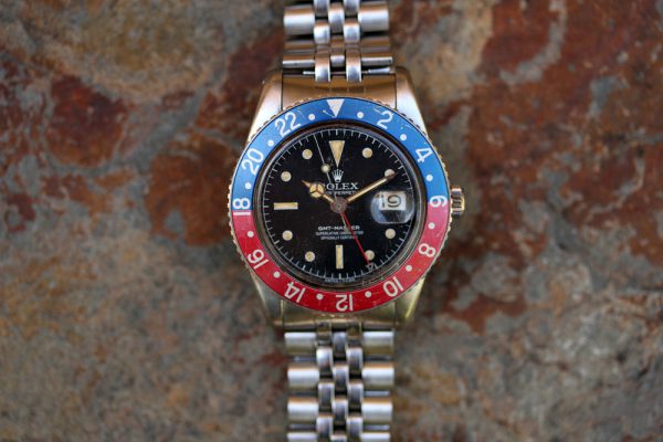Up for grabs is a Rolex GMT-Master in steel