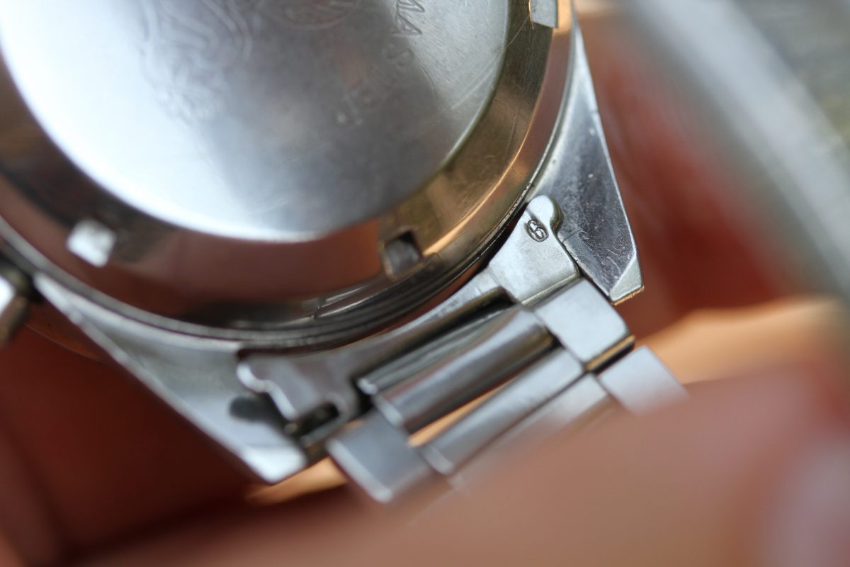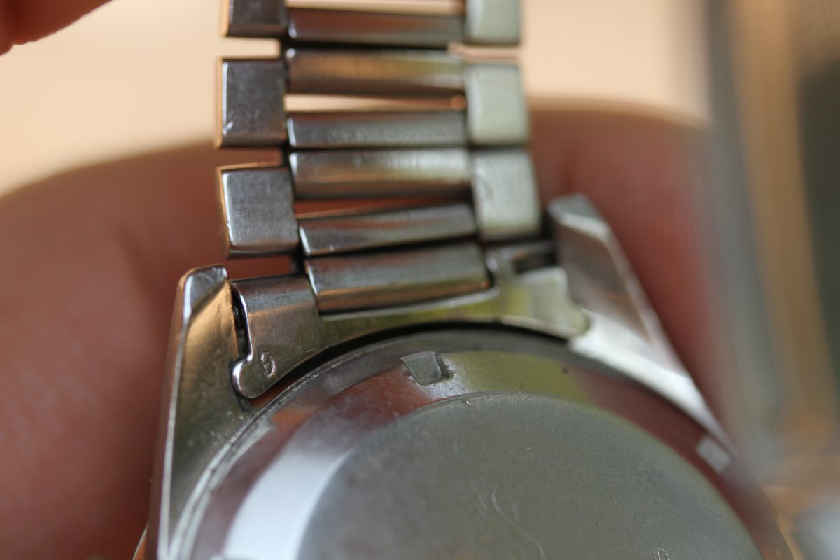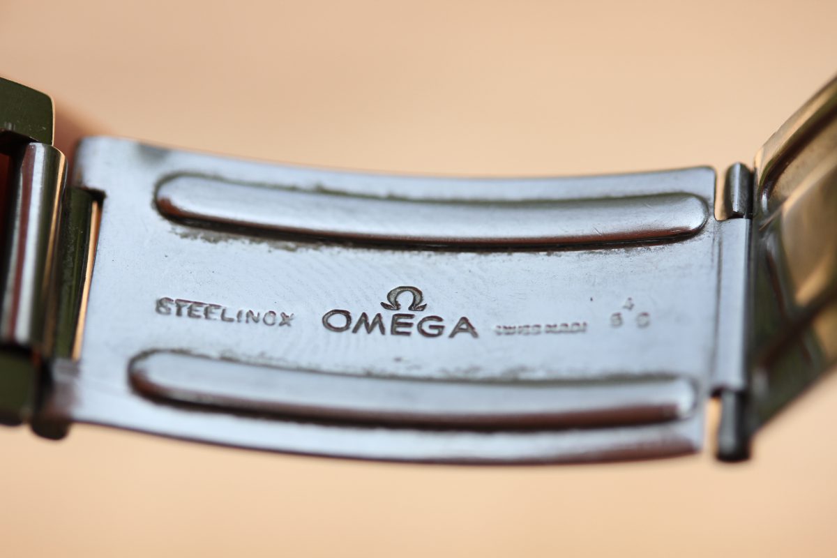 The bracelet is correct and original Omega 7077. It also has the early version of 6 end-links with single notch for the spring bar. They are original, not reproduction. There are 2 links on the bracelet which were repaired in past underneath with minor solder. It is not visible on outside.