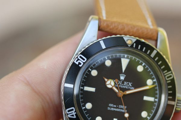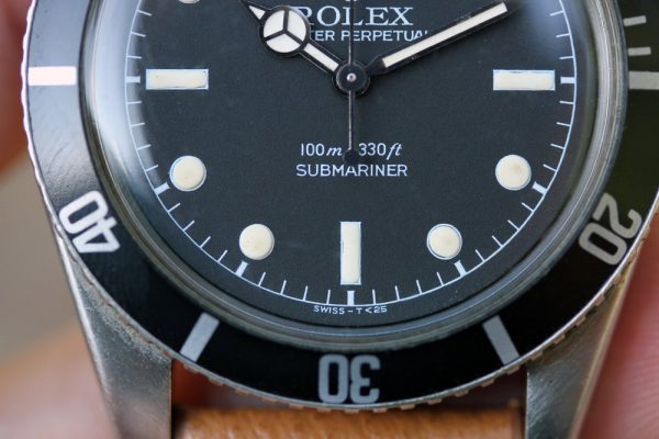 Bezel insert is a flawless “long 5” with tritium pearl.