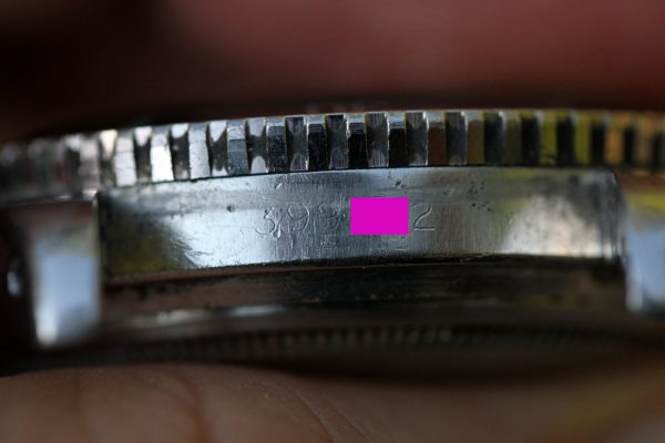 Excellent vintage condition case with even lugs. The serial number is fully intact and clearly visible. Reference number has wear from bracelet, but still visible under the loupe.