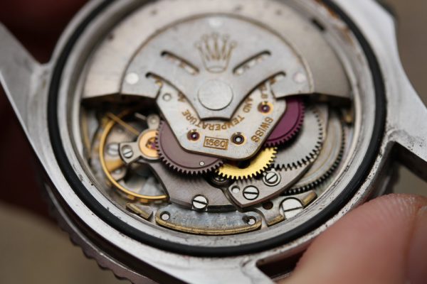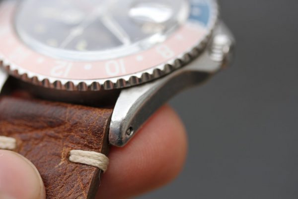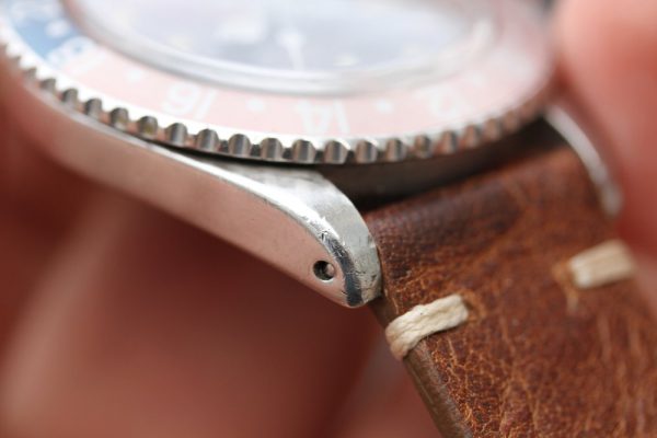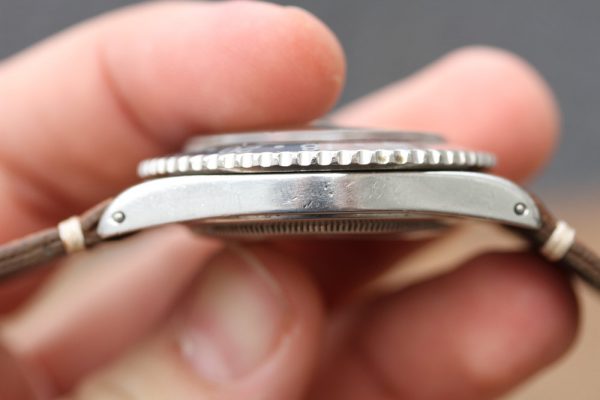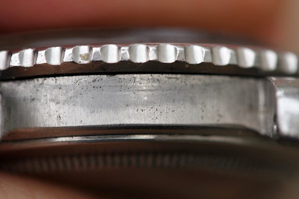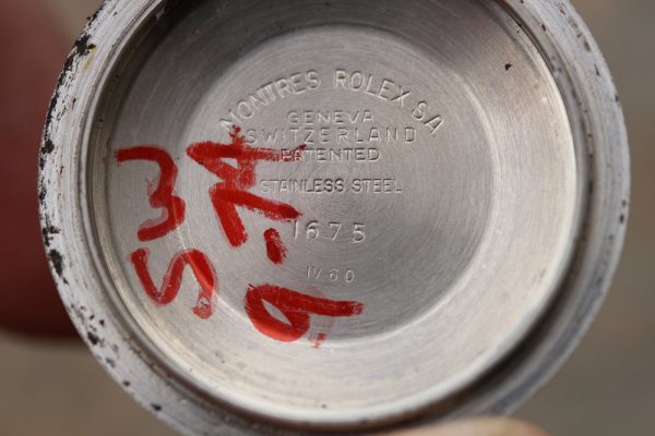 Excellent vintage condition case. The lugs are thick and clearly show original chamfers. The watch shows sign of being worn, but no refinishing. PCG’s are crisp and sharp. There is bracelet wear between the lugs, you can see the top of the original numbers and can make out that its a 1675 obviously, the serial number also top parts of numbers are original, while the rest of them were touched up in an effort to preserve.