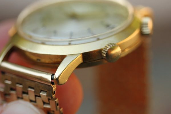 The case is in excellent vintage condition case even and defined lugs. No major dings or dents. The crowns have been replaced in past.