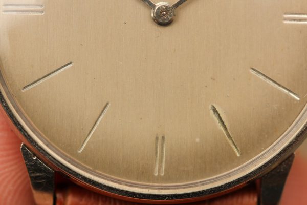 Dial is original, rhodium in color with carved in markers. No refinish.