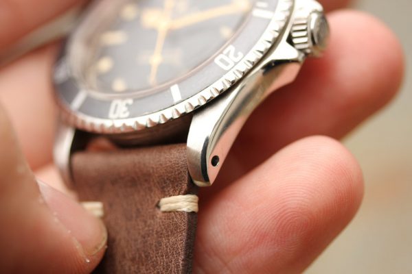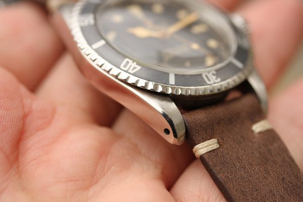 Watch comes on unworn vintage leather strap with Rolex steel buckle.