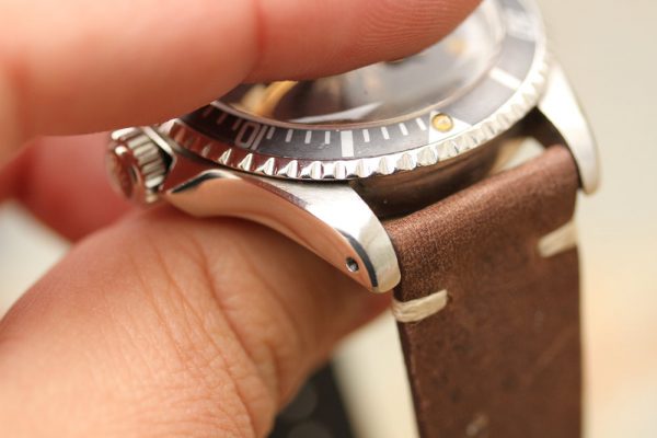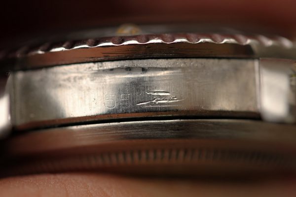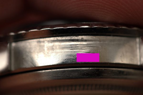 Excellent vintage condition case has previously been polished with chamfers on lugs and sharp PCG’s. Serial and reference numbers show wear, but still fully visible.