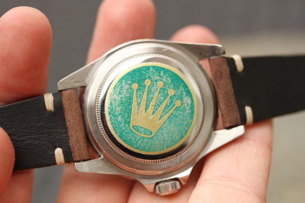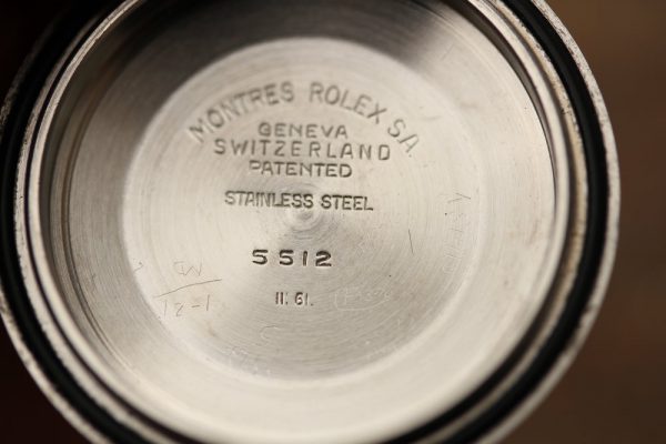 Caseback is original, stamped 5512 and II.61 inside. Outside has a Rolex caseback sticker with signs of age and wear.