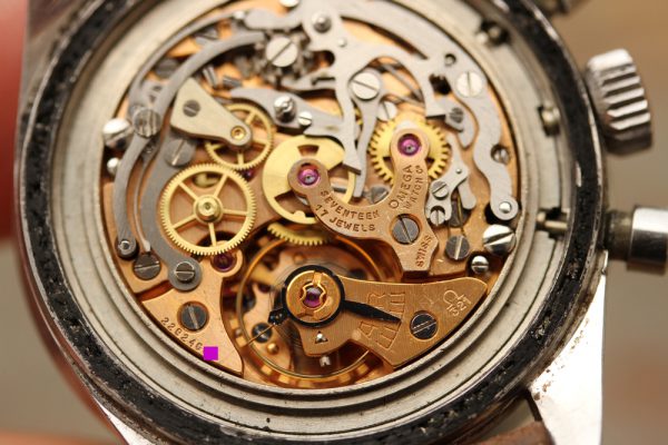 The watch winds smoothly, chrono runs, stops, and resets and shows 300 amplitude.