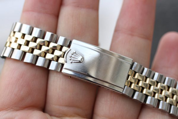 The bracelet is a Rolex USA jubilee in steel and 14kt yellow gold.