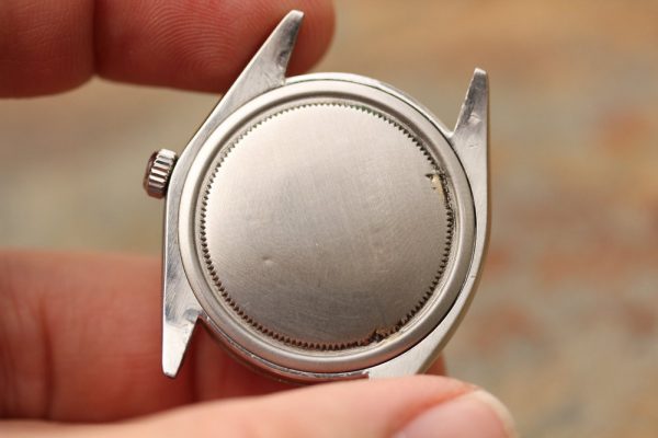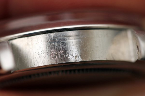 Very good vintage condition case is polished without major dings or dents. Serial and reference number are fully intact and clearly visible.