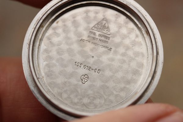 Caseback is in excellent and damage free condition. Stamped 105.012-65 inside.