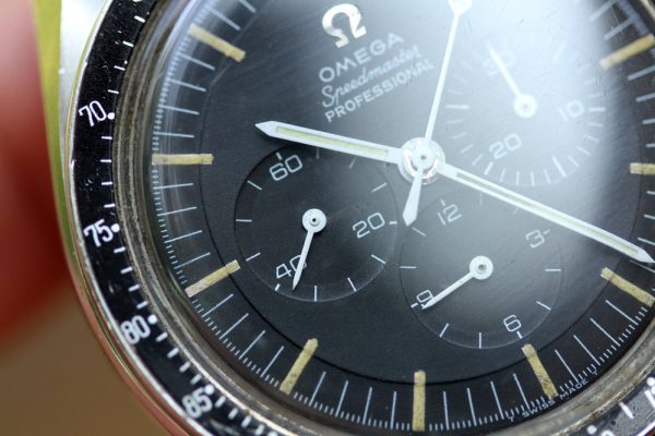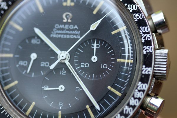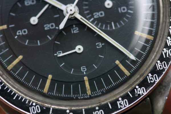 Dial is original, step with yellow patina on plots. Hands are period correct, tritium, with Spear chrono hand.