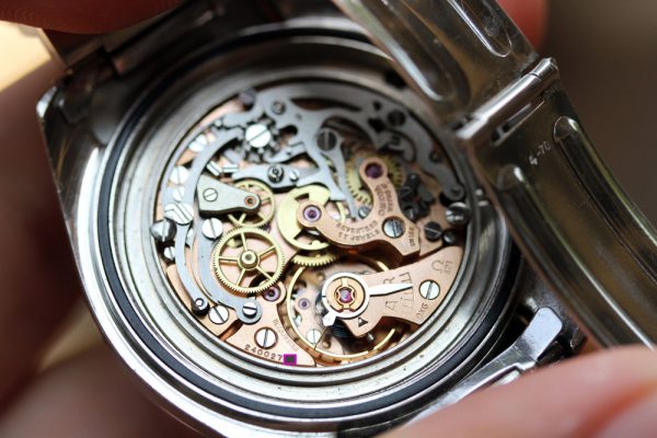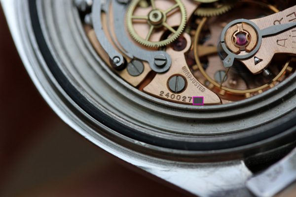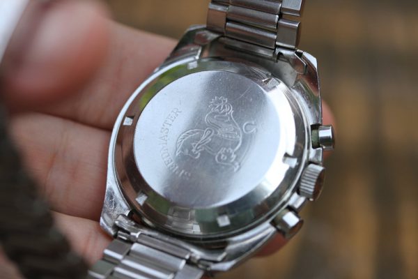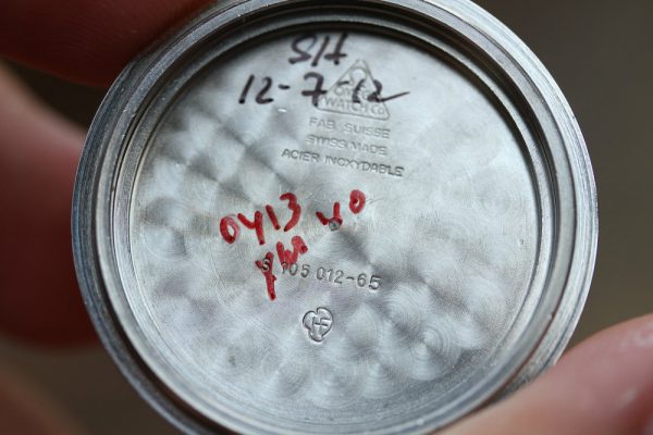Caseback is original, double step with clear hippocampus on outside and stamped 105.012-65 inside.