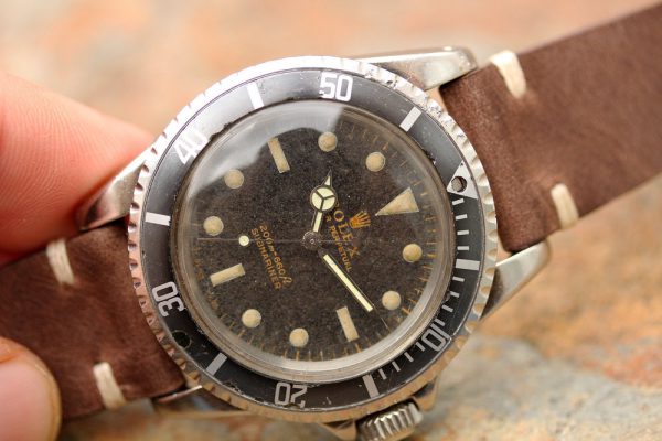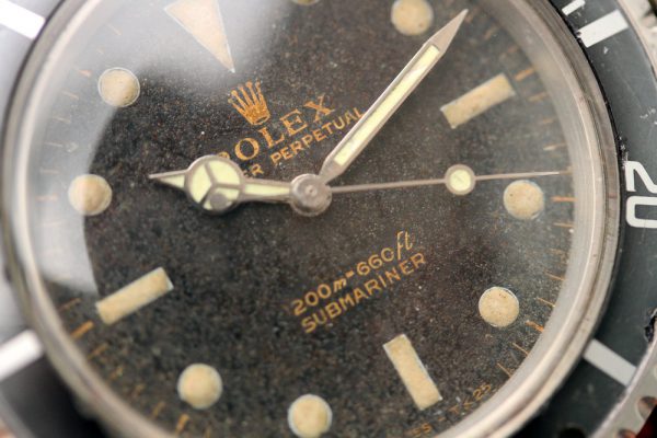Dial is original, gilt, with original tritium lume. The dial has aged to a matte finish with a tropical brown hue. There is no chips or other damage on dial, just aging.