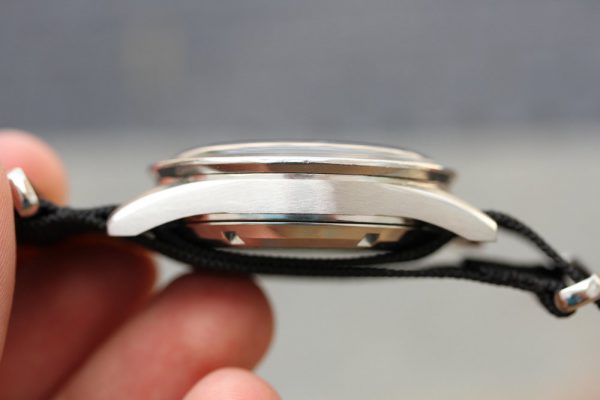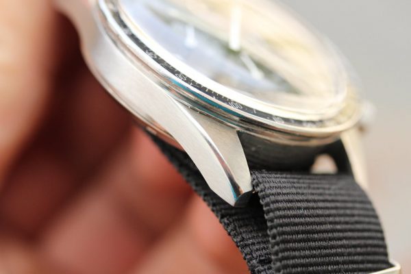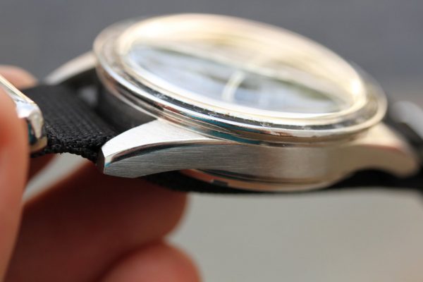 Excellent vintage condition case has previously been polished but still retained the original beveled edges on lugs.