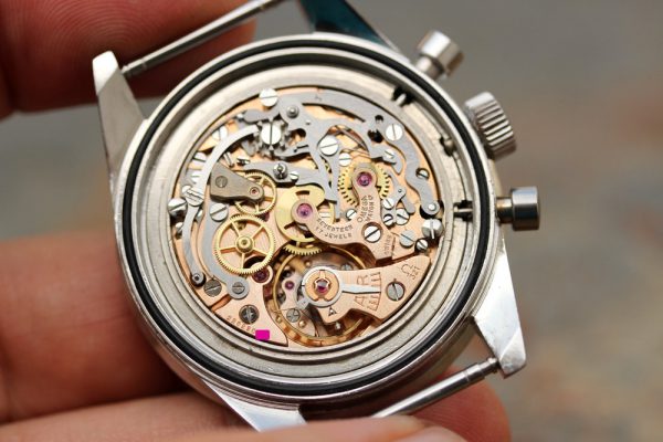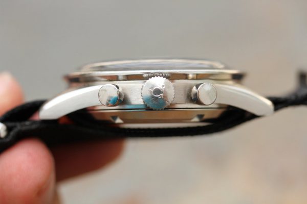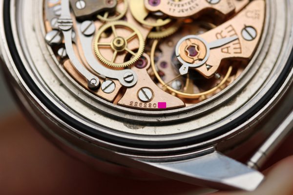Dial is original, evenly spotted if you look at it under certain angle, but as you can see in one of the pictures it also not visible under different angles. The chrono sweep hand has been replaced at some point, other hands look original.