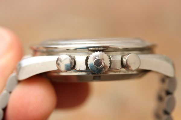 No box or papers. No documented service history. Watch winds smooth, runs well, chrono runs, stops, and resets.