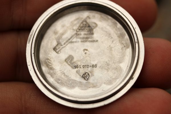 Caseback is original, nice Hippocampus engraving on back, inside is stamped 105.012-66