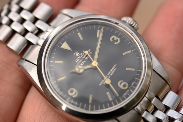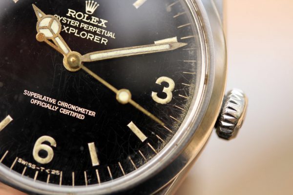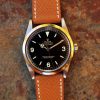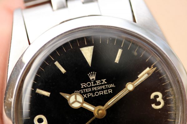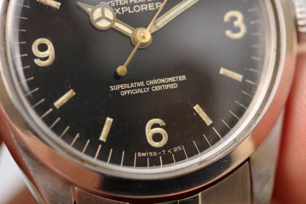 Dial is original, gilt with glossy finish. The outer edge of the dial has matted and most obvious on the right side of the dial. There lume is original with nice patina on hands and dial. There is no man-made damage on dial and only natural aging/degradation over time.