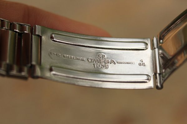 Bracelet is original Omega 1039 with 516 end-links and dated ’68, which is period correct. Bracelet fits about a 7.25″ wrist. All spring loaded links are intact.
