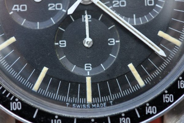 Dial is original, step with applied logo, tritium. Nice patina throughout and hands appear original to the watch. The lume application looks a bit shaky, but passes close-up inspection for texture and UV light. I have had multiple examples of similar applied dials in this reference and believe it is original.