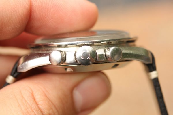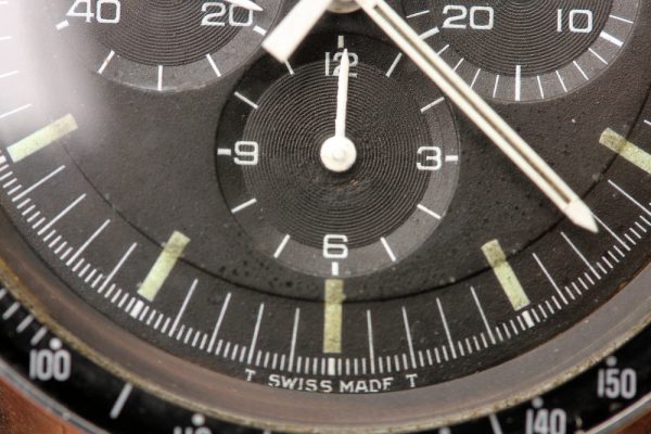 Dial is AML “B4” as per Moonwatch Only book, with short hour markers (they do not break the minute markers). This dial is very uncommon. Original, tritium with signs of age and some spotting. Hands are original and tritium.