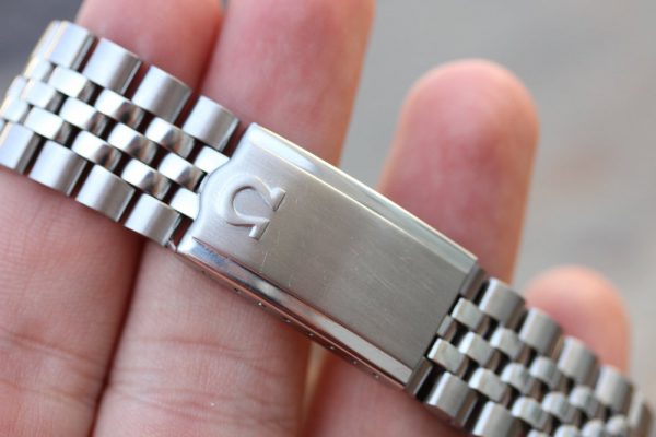 Bracelet is an Omega “jubilee” style with 5.73 date on clasp. Excellent condition and fits a normal size wrist about 7.5″