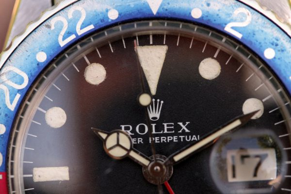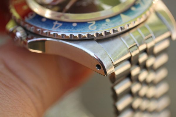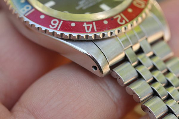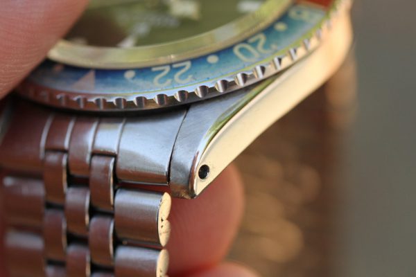 Bezel insert is original Pepsi, fat font with red back. Nice vivid red color and fading blue hues.