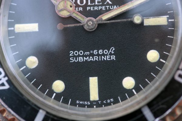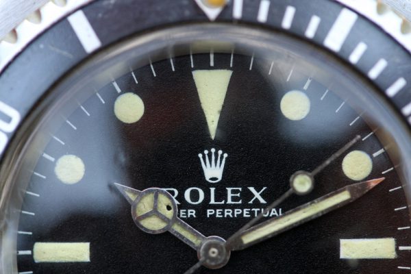Dial is original, matte “Meters First” with nice patina on plots. No drag marks. Hands are original and tritium with matching patina to the dial.
