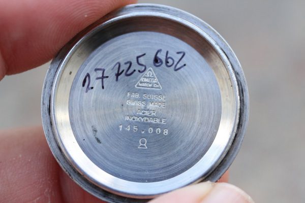 Caseback is original, unpolished, with clear etching on outside. Inside is correctly stamped 145.008.