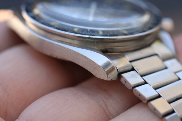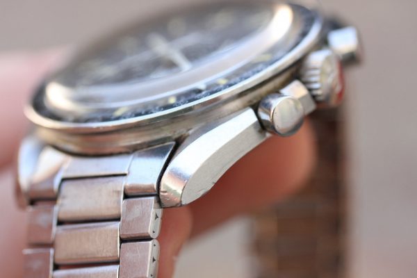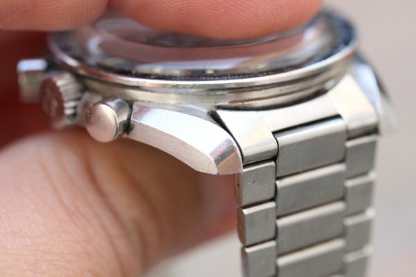 Superb vintage condition case is unpolished with very sharp lugs and original finish. No corrosion or pitting. No major dings or dents. Original pushers and skinny logo winding crown.