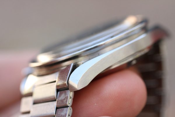 Bracelet is original Omega 1039 flat link with all of its links (some are removed, but are included), correct 516 ends, and 2.69 date code on clasp. The bracelet also appears unpolished.
