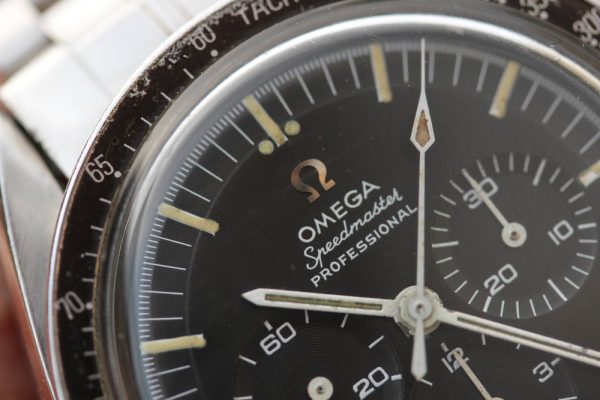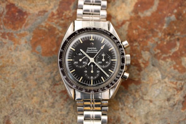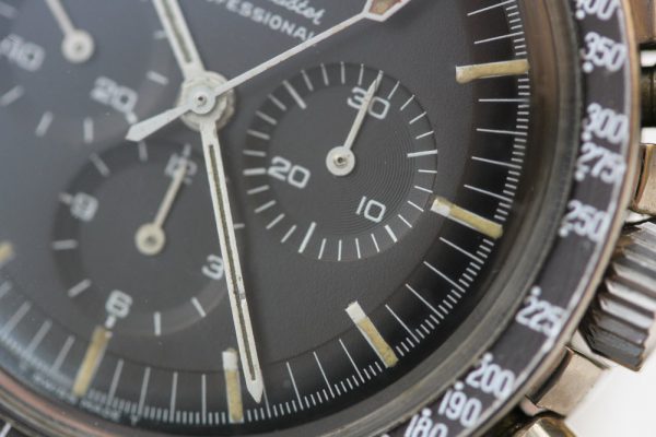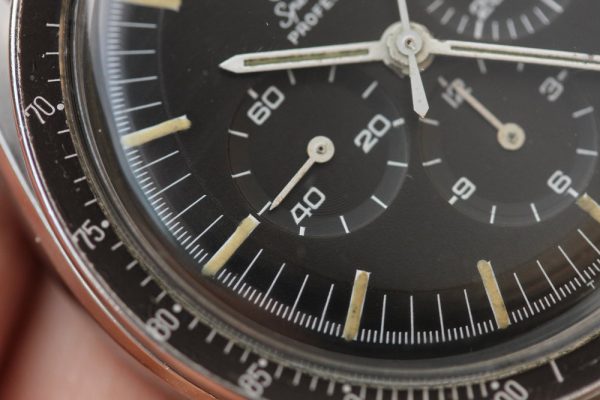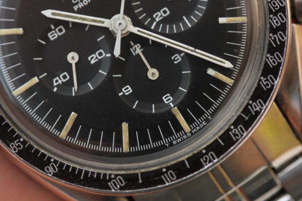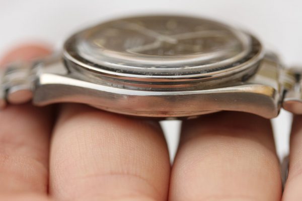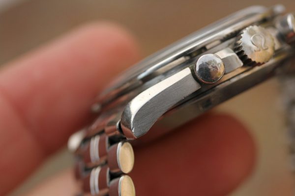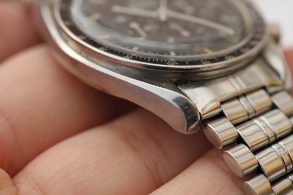 The bracelet is not commonly seen on Speedy Pro, but the watch watch found with it on, so it stays on for the sale. It is an Omega reference 1069 with 47 end-links. There is not date on clasp, but its stamped “II” for some type of code on one of the blades.