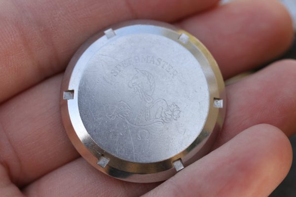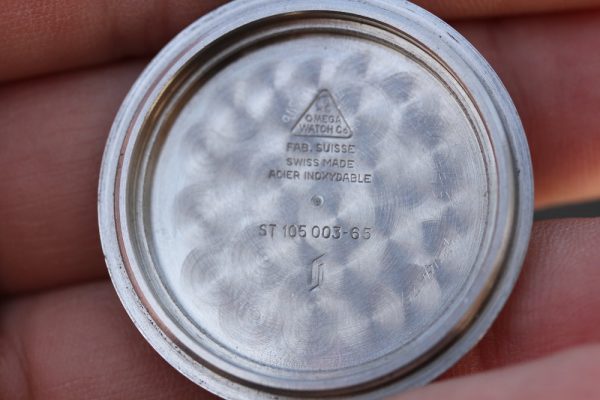 Caseback is original, unpolished, with crisp Hippocampus on back. No major tool marks/scratches. Inside is correctly stamped 105.003-65.