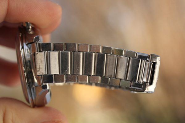 Bracelet is original and correct 1035/506 in very tight condition. All spring loaded links are tight and working. The clasp is still “sticky’ when opening and closing. All extra links were also found inside the box and are included.