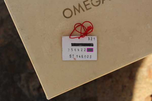 There is not much known about reference 145.003. The watch is not stamped 145.003 anywhere, but rather has 105.003-65 inside as most every other example of 145.003 I have ever seen is. It is my belief that 145.003 was the last batch of “Ed Whites” which were being sold by Omega as “left over” straight lug watches during that time, together with twisted lug models besides them. Typically, the only way to find out if your late serial number watch with 105.003-65 caseback is actually a 145.003 is to get an extract from archives. In this case, we actually have an original Omega hang tag which has a matching serial number to the watch and below it is the reference number: ST 145.003. This printed hang tag, in my opinion, beats any hand written warranty papers in terms of rarity and addition of value to the package.