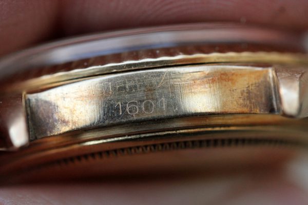Caseback is original, stamped 1601 with 14kt hallmarks inside.