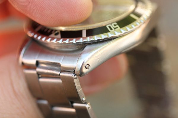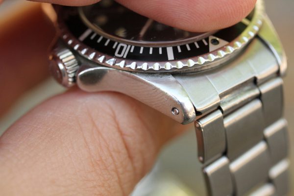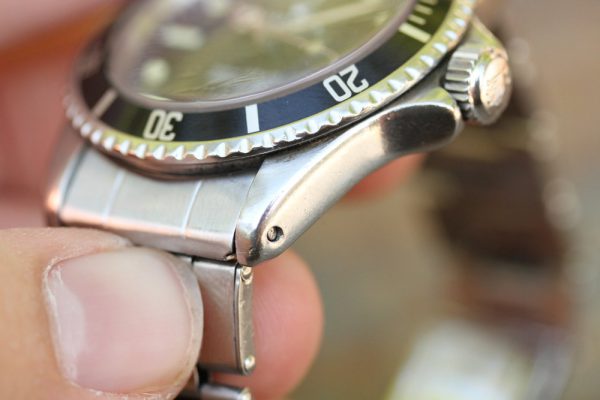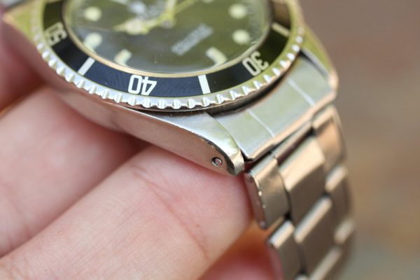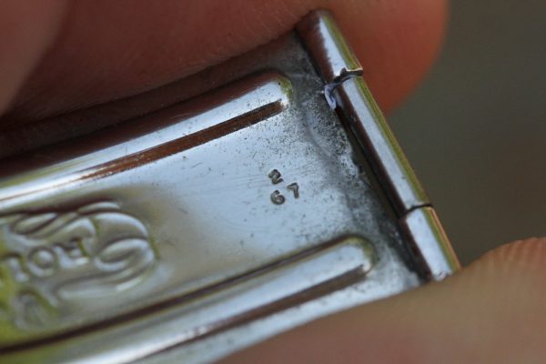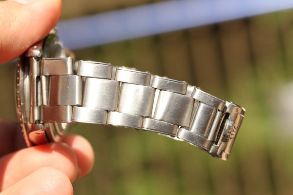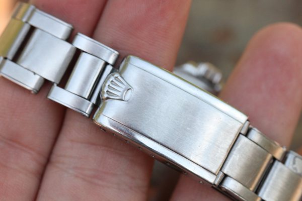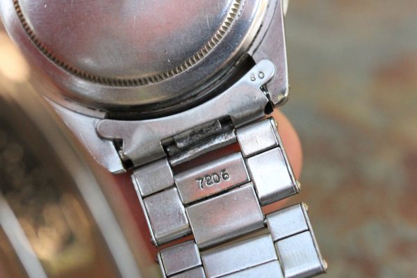 Bracelet is a Rolex Swiss rivet 7206 with 11 links, 80 stamped ends, moderate stretch from use and 67 date code. The bracelet was added to the watch recently, and watch is available without the bracelet.