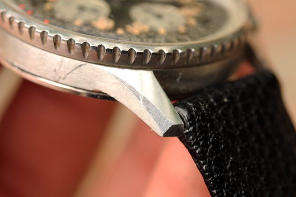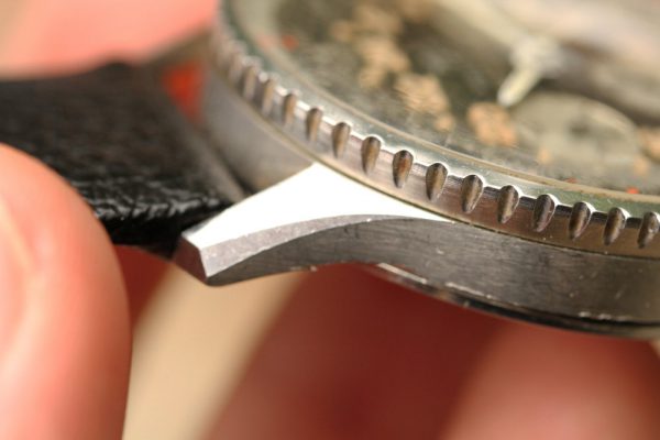 Case is certainly unpolished with original finish and sharp edges. There are some tool marks and signs of watch being worn.
